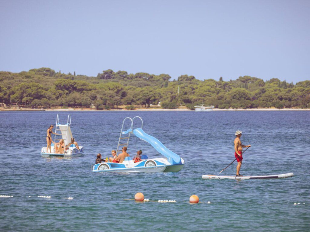 Er zijn sportvelden, voetbal- en volleybalvelden, spelautomaten en maar liefst 3 zwembaden aanwezig. Tevens is er een entertainmentprogramma, een scooter-verhuur en nog véél meer. Een hapje eten kan in de verschillende restaurants op het park en gezellig wat drinken kan in een van de drie bars. Er zijn een tal van watersport opties zoals windsurfen, kanoën, waterfietsen en duiken. Je kunt er tevens jetskis, waterscooters en bananenboten huren.
