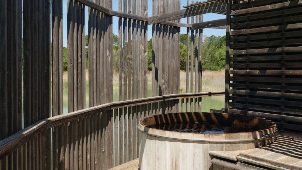 De drijvende hut is geschikt voor twee personen en heeft een comfortabel tweepersoonsbed. Bij het raam staat een zitje met een koffiezetapparaat, en er is een luxe badkamer met een douche, wastafel en een toilet. Buiten op het terras staat een tafeltje met twee stoelen, en een heerlijke jacuzzi. Handdoek en badjassen hangen ook voor je klaar. De airconditioning zorgt in de zomer voor verkoeling, en warme lucht in de winter. Je kunt overigens ook een diner bestellen dat wordt bezorgd, zo kun je in alle rust van een heerlijk ontspannen verblijf genieten.
