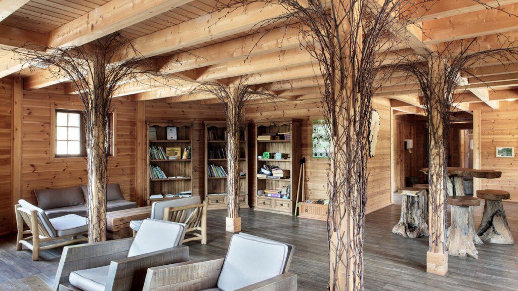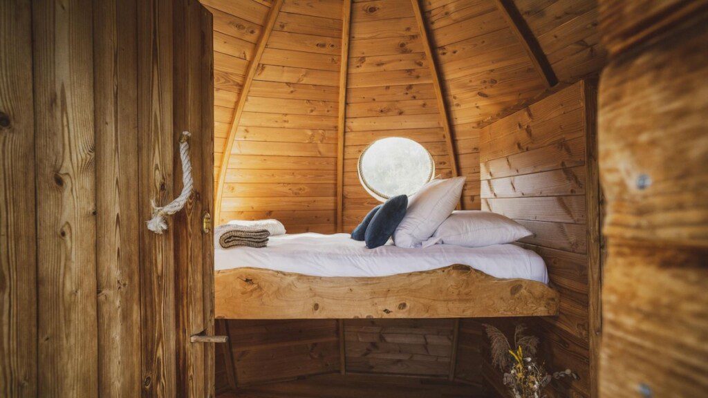 Dit verblijf op het water heeft een opvallende coconvorm en is slim ingericht met alles wat je nodig hebt. Binnen vind je een wastafel, koffiezetapparaat en stroomvoorziening. Buiten ligt het grote terras met hottub waar je de hele dag door kunt zitten. Op zo’n 250 meter van je waterverblijf ligt een eco-lodge met toiletten en luxe badkamers. Hier kun je ook gebruikmaken van een gezellige ontspanningsruimte met spelletjes, boeken en warme drankjes. Voor wat extra afwisseling is er op het park een buitenzwembad met glijbanen.