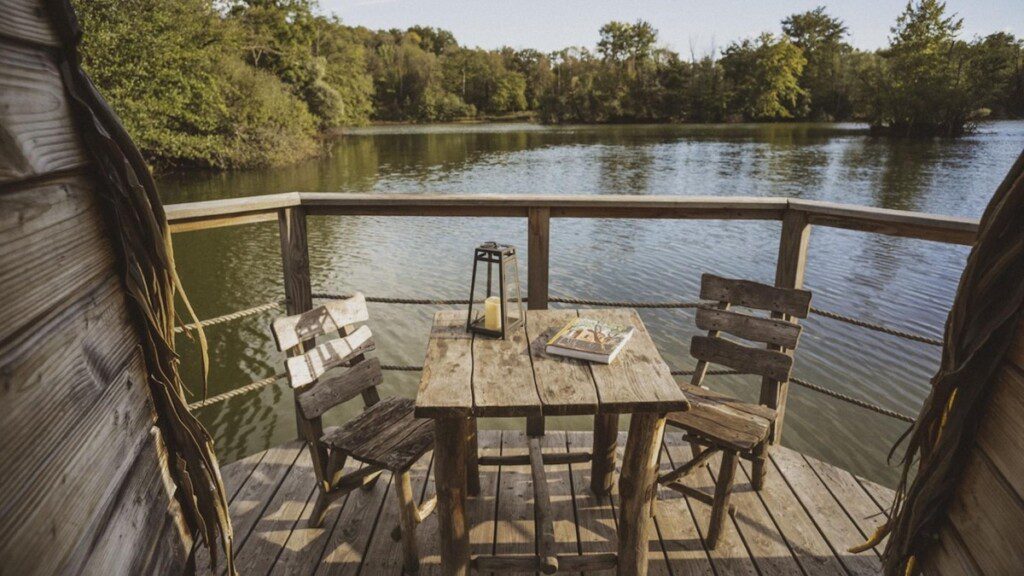 Deze drijvende hut ligt midden op een meer en geeft je direct dat vakantiegevoel. ’s Ochtends ligt je ontbijt klaar op de steiger en haal je het zelf op met een roeiboot. Overdag dobber je een beetje mee met het ritme van de natuur en ’s avonds relax je in de hottub op het terras terwijl de zon langzaam ondergaat.