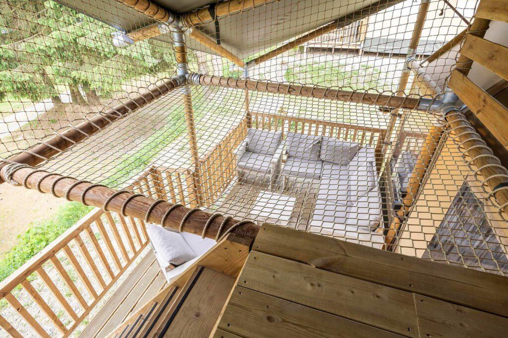 Voor een glamping vakantie in België zit je hier goed. In de ruime Ranger Lodge voor 8 personen kun je comfortabel genieten van het echte buitengevoel. De glampingtent beschikt over een extra verdieping waar je kunt slapen en relaxen in het hangnet. Er zijn drie slaapkamers, een leefruimte met kitchenette en pelletkachel, een badkamer en een terras met zicht op de zwemvijver. De tenten zijn zo opgesteld dat het ook heel geschikt is voor meerdere families.