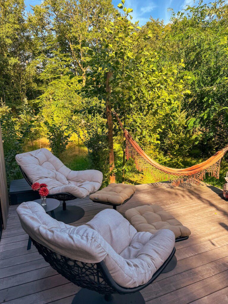 Extra bijzonder is de privé wellnesstuin die je optioneel bijboekt (€99,- voor 3 uren). Denk aan een sauna, hottub, buitendouche, relaxkas en hangmatten. Ook kun je kiezen voor een ontbijt dat ’s ochtends bij je huisje wordt bezorgd.