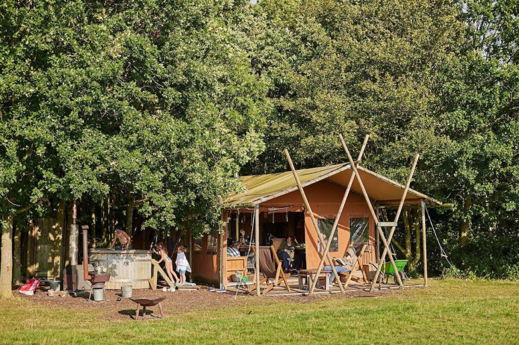 Beleef een luxe kampeervakantie op de boerderij. Je verblijf is geschikt voor zes personen en beschikt over drie slaapkamers, een woonkamer met volledig ingerichte keuken en een toilet. Je kunt kiezen voor een privé douche in de tent, naast de tent of bij de boerderij. Alle huisjes beschikken over een hottub en een kampvuurplaats. Na een avontuurlijke dag op of rondom de boerderij kan je hier heerlijk tot rust komen. Sommige tenten hebben uitzicht op het veld met edelherten en ben je omringt door spechten, fazanten en uilen. Hoe gaaf is dat!