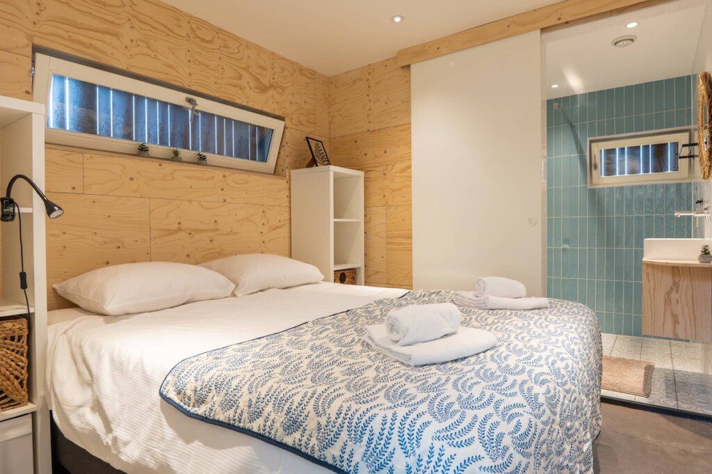 De lodge is geschikt voor maximaal 6 personen (max. 4 volwassenen). Beneden zijn twee slaapkamers, beide met een eigen badkamer. Eén van de slaapkamers heeft zelfs een ligbad. Via een trap kom je op de open slaapzolder, een gezellige plek voor kinderen vanaf circa 8 jaar. De lodge is modern ingericht, maar met een warme, huiselijke sfeer. Het beschikt over een volledig uitgeruste keuken, een eethoek en een woonkamer met houtkachel. Huisdieren zijn welkom, dus ook je hond kan mee naar Zeeland.