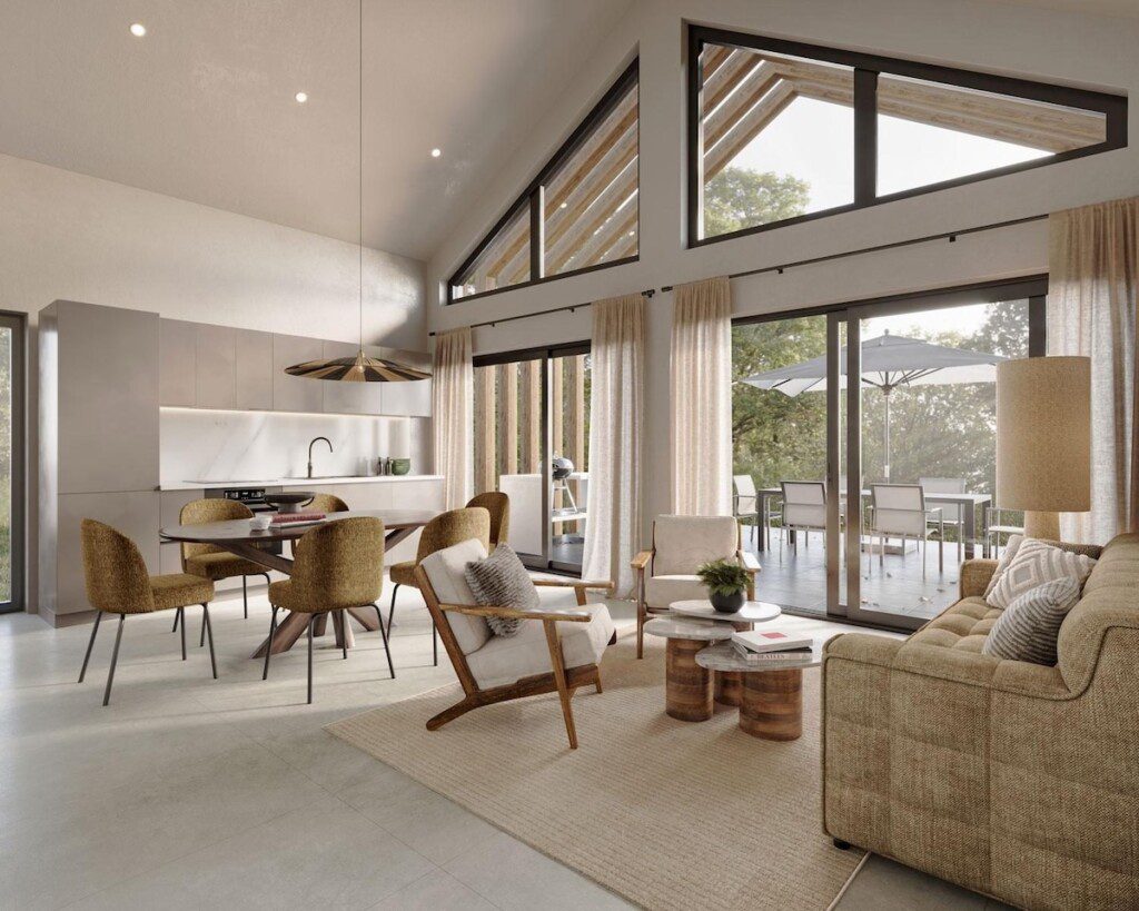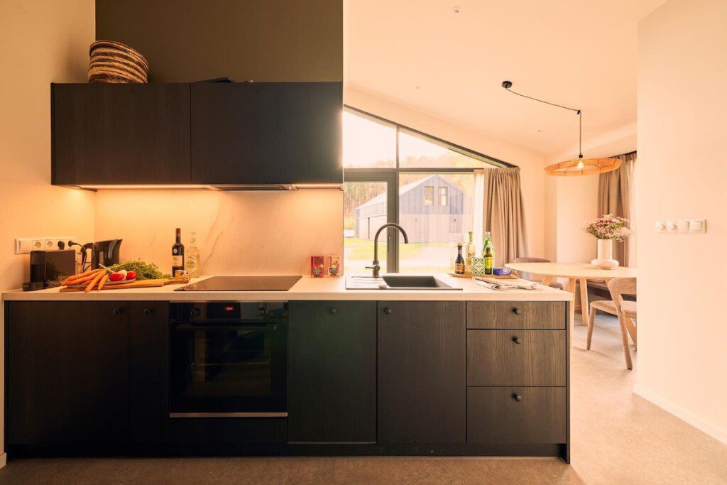 De lodges zijn geschikt voor 4 tot 6 personen en stijlvol ingericht met natuurlijke materialen. Grote ramen halen het buitenleven naar binnen en geven je uitzicht op het bos. Elke lodge beschikt over een comfortabele woonkamer, volledig uitgeruste keuken, 2 of 3 slaapkamers en meerdere moderne badkamers. Extra fijn: alle accommodaties hebben een eigen sauna. Buiten vind je een ruim terras waar je geniet van de frisse berglucht.