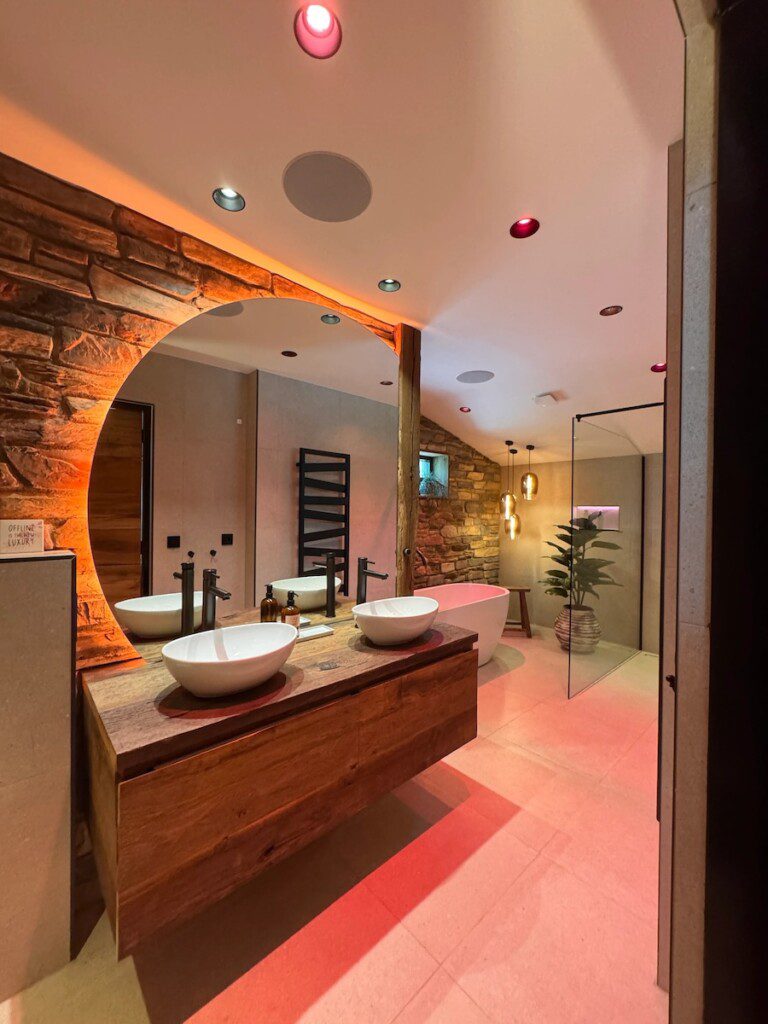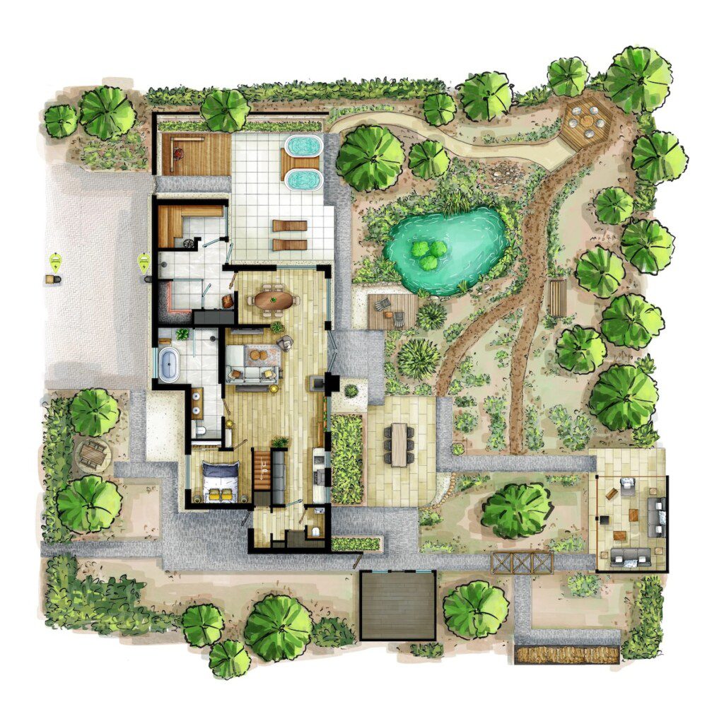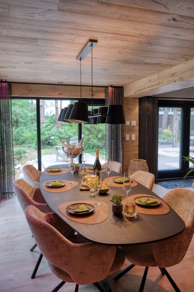 De lodge is geschikt voor maximaal zes personen en beschikt over een ruime woonkamer met houtkachel, een moderne keuken en een grote eettafel. Er zijn drie slaapkamers met grote tweepersoonsbedden. De badkamer is prachtig afgewerkt en heeft een ligbad en regendouche. De highlight van dit natuurhuisje is je eigen 1200 m2 wellnesstuin. Hier vind je een sauna, stoomcabine, twee hottubs en een buitendouche. Ook is er een overdekt terras met haard en zijn er verschillende terrassen en rustige plekjes om te zitten. Kortom, je hebt hier volop privacy!