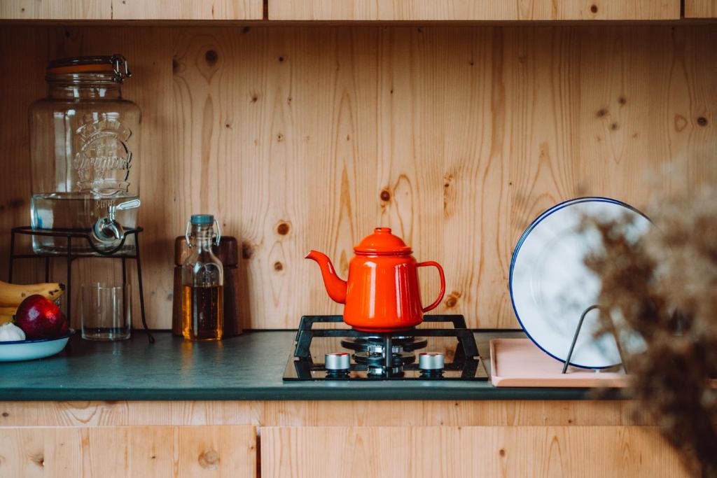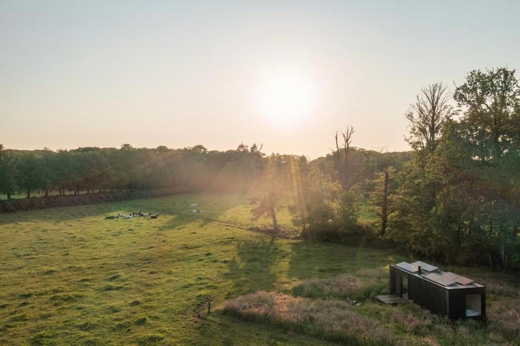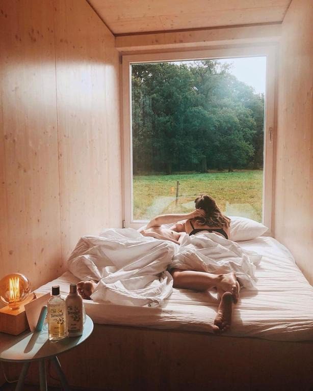 Deze cabin voor twee personen is gebouwd met duurzame materialen en heeft grote ramen die uitkijken op weilanden waar de koeien rustig grazen. Binnen vind je een knusse zithoek met houtkachel en slaapbank, een volledig uitgeruste kitchenette, een comfortabel tweepersoonsbed en een badkamer met warme douche. Op het ruime terras begin je de dag met koffie en vogelgeluiden. Er is geen wifi, dus hier kun je echt even het slow living gevoel ervaren.