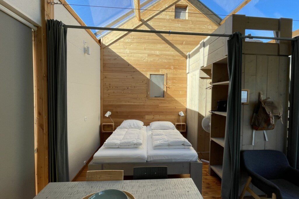 De Skyte NatureLodge is een duurzaam Natuur Huisje op De Klashorst. In de Skyte NatureLodge overnacht je onder de sterrenhemel en ervaar je de verbinding met de natuur. Wanneer je overnacht in dit natuurhuisje heb je een groot terras dat met glas overdekt is waardoor je met regenachtig weer toch buiten kunt zijn. De Skyte NatureLodge is gelijkvloers en geheel ingericht voor vier personen. Tevens heeft het een compleet ingerichte keuken, zit- en loungehoek, twee slaapgedeeltes en een moderne douche met toilet. De bedden zijn voorzien van comfortabele kussens en dekbedden. Daarnaast kan er tegen betaling gebruik gemaakt worden van een hout gestookte mobiele sauna.
