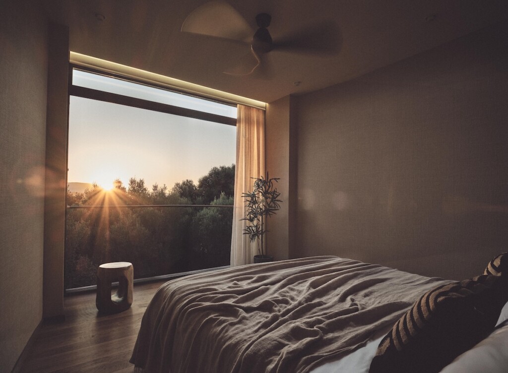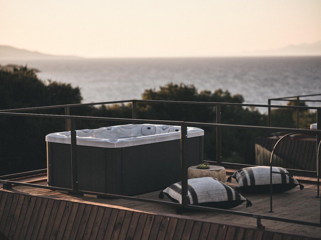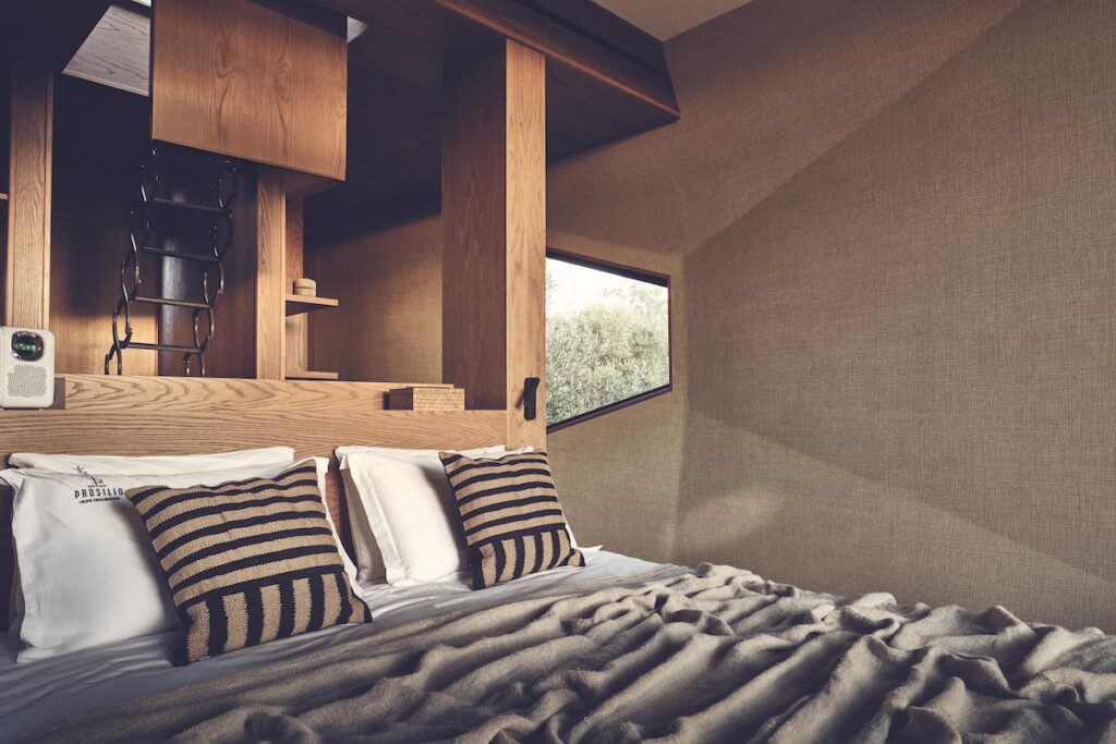 De cabins zijn sfeervol ingericht met natuurlijke materialen en grote ramen die het landschap naar binnen halen. Kies je voor de romantische Deluxe Suite, dan slaap je in een comfortabel tweepersoonbed en is de badkamer voorzien van een jacuzzi en/of hydromassagedouche. De Senior Suite is geschikt voor vier personen en beschikt over twee slaapkamers, twee badkamers en een eigen jacuzzi. Elke cabin heeft een privé (dak)terras met uitzicht over de heuvels of zee.