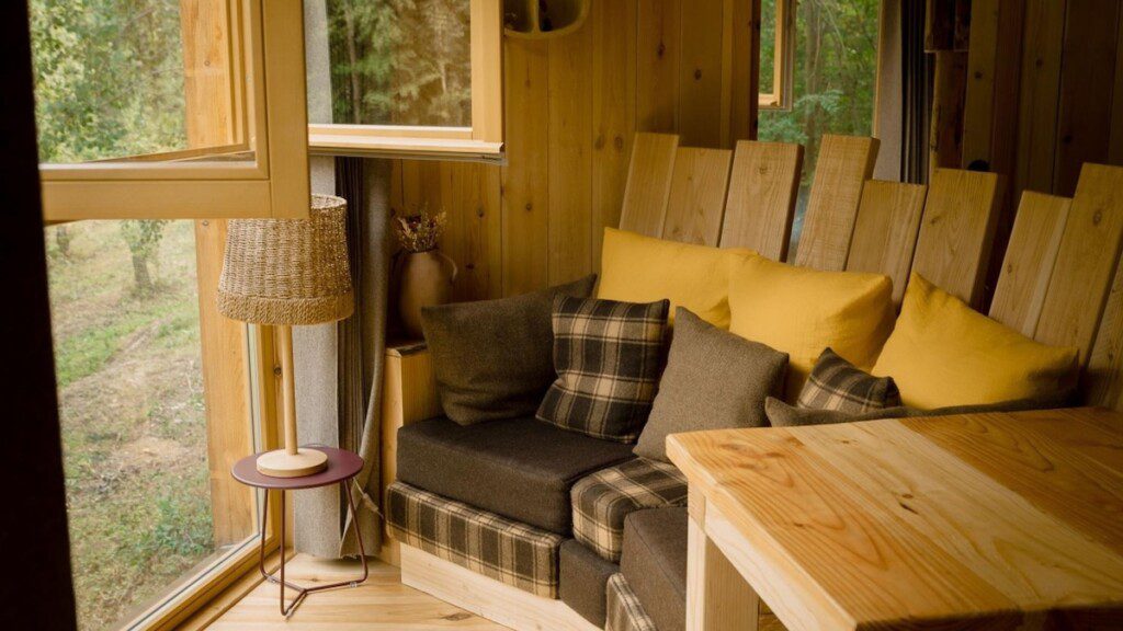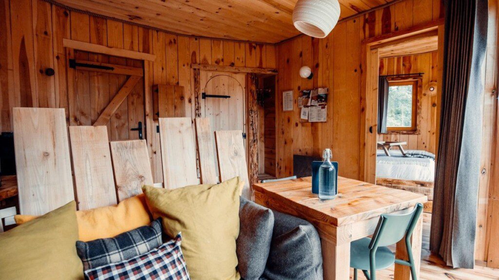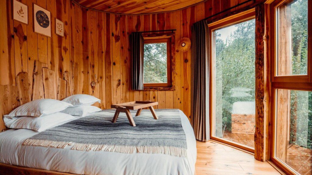 Deze boomhut in Frankrijk is geschikt voor gezinnen en voelt meteen knus aan. Binnen vind je een gezellige zithoek, een badkamer en twee slaapkamers. Voor de kinderen zijn er eenpersoonsbedden en een stapelbed, terwijl jij zelf slaapt in een comfortabel tweepersoonsbed. Alles is praktisch ingericht, maar met genoeg sfeer om echt even tot rust te komen. En dan het letterlijke hoogtepunt: boven op het dak wacht een verwarmd Scandinavisch bad, acht meter boven de grond! Deze bijzondere boomhut overnachting ga je niet snel vergeten!
