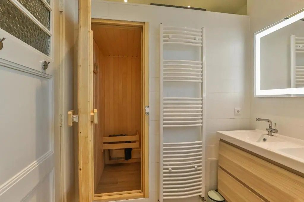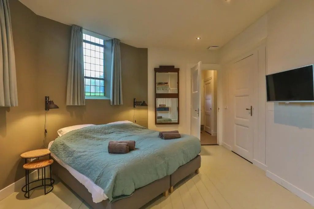 De kerk voor 10 personen beschikt over vijf slaapkamers, elk met een eigen badkamer. Er is een slaapkamer met jacuzzi aanwezig, evenals een slaapkamer met sauna. Het beschikt over een zeer ruime woonkamer met gashaard, lange eettafel en bar. De open keuken is volledig uitgerust met onder andere twee ovens, twee vaatwassers, zes kookpitten, quooker en ruime koelkast. twee ovens, twee vaatwassers, zes kookpitten, quooker en ruime koelkast. Heb je geen zin om te koken? Op verzoek is een privé chef of catering mogelijk. Zo is het voor de hele groep een ontspannen weekendje weg!