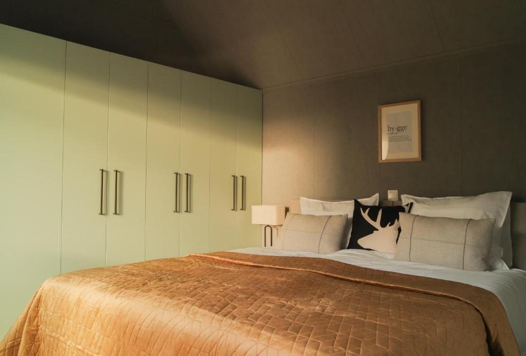 De duurzame paalwoning voor twee personen heeft een Scandinavische inrichting. Het beschikt over een woonkamer en een volledig uitgeruste keuken. De slaapkamer is afgesloten en heeft airco, verduisteringsgordijnen en een luxe ensuite badkamer. Op het balkon staat een tuinset en in de tuin een strandkorf.